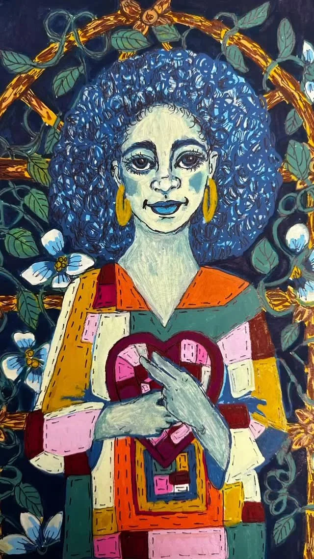 Prompted to create paintings inspired by her fiber art, this series moves freely between being cellular and botanically inspired. Ropes and vines, circles and dots, complementary and vibrational color activate the eye and recall the energy of Brandt’s fiber art.